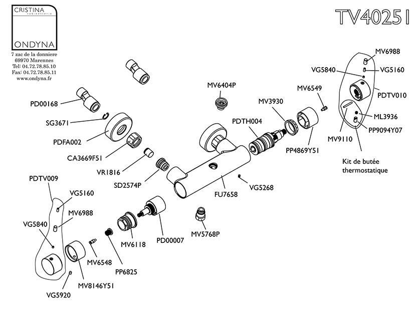 #DOUCHE TRIVERDE THERMOSTATIQUE 2 SORTIES TV456 CHROME